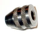 Ovo je minijaturna stezna glava (u žargonu zvana “borfuter”), i to je ključni dio bušilice, a koji sami ne možete napravitti. Ima navoj M6, hvata borere debljine 0,5 – 3,2mm i steže se rukom. Ove stezne glave su pravi spas za samograditelje bušilica. Za velike brojeve okretaja se ipak preporučuju glave sa rascijepljenim umetcima. Ako želite tu varijantu, možete i njih kupiti i to kompletan set.